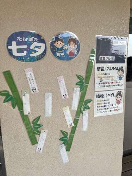 7月7日は七夕ということで、笹や短冊をイメージした掲示がありました。