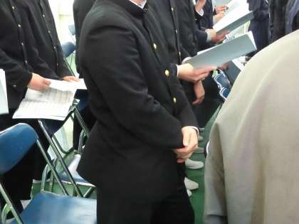 3月7日(月)から、卒業式に向けての練習が始まりました。練習前の導入時間では、学園や分校の先生方から「卒業生は在校生へ、在校生は卒業生へ心を伝える」ということを一貫して伝えられました。指導の話の中で、「人は相手を感じとり、思いやることができる」という話がとても印象的でした。