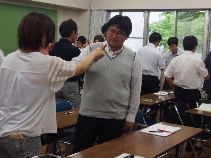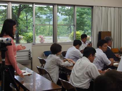 研修会では、まず授業の感想をひとりひとりの職員から聞き、その内容をもとに実践授業の目的を細かく解説していただきました。兵藤先生は単純な作業を通じて、人との関わり方を教えて下さいました。また、このような取り組みが生きる力につながり、教職員は卒業までにその力を育成する義務があると言っておられました。