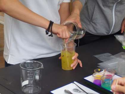 保冷剤作りでは、自分達の好きな色をつけてオリジナルのものを作り、お互いのものを見せ合い