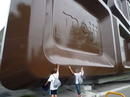 また、ギネス記録に認定されている、世界一の大きさの広告であるチョコレートの形をした壁面を見学させて頂き、想像をはるかに超えた大きさにとても驚いていました。
