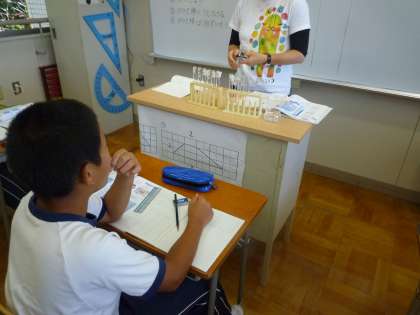 色々な水溶液をリトマス紙に付けて、性質を調べましたが、実際にリトマス紙の色が変わると、歓声があがりとてもいきいきとした表情をしていました。