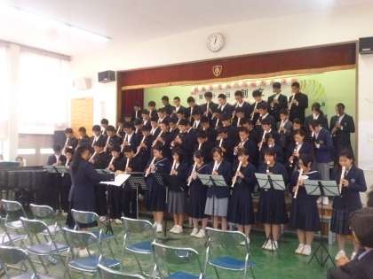 最後は音楽科の発表です。クラスごとに、クラス紹介を歌や楽器で披露した後、全体で「ハトと少年」をリコーダー合奏、「みんながみんな英雄」「あなたに」を全体合唱しました。きれいにそろったリコーダーの音色がすごく美しく、全体合唱も生徒みんなが、大きな声で歌っていました。