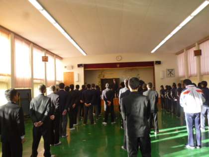 今週は「第68回人権週間」ということで、学校内のピロティーにある「人の痛みを知り、思いやる心を持とう」という標語を例えにされ、特に意識をしようと呼び掛けられました。人権とは人が幸せに生きていくために守り、そして、守られなくてはならないものです。集会の始まりから感じられた気の緩みは学級での学習態度にも表れています。頑張って授業を受けようとしている子の学習する権利を、邪魔をしている子がいる。お互い足の引っ張り合いをするのではなく、みんなが気持ちよく授業が受けられるような環境をつくることが、人権を守ることにつながるのだよとおっしゃられました。