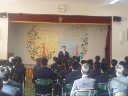 弘済分校では1月10日(火)の1時間目に三学期の始業式が行われました。始業式では分校・学園の先生方より様々なお話がありました。その中で、副校長先生からは来年度に向けての目標と三学期の過ごし方についての話がありました。話のキーワードは“切り替え”で、『授業と休み時間』『友達と先生』などあらゆる場面でケジメある行動をしようというお話でした。