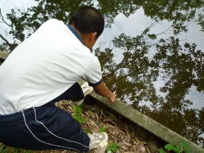 今日は、学園の敷地内にある池にザリガニを釣りに行きました(*^^)v