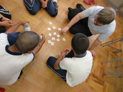 色々な食べ物を英語で学びました☆日本語と同じ言い方をする物があったり、似ているけど違う言い方をする物があったりするので、初めは戸惑っていましたが、どんどん覚えていくと嬉しそうに話していました。カードを使ったゲームでは、勝つために真剣そのものでした!!