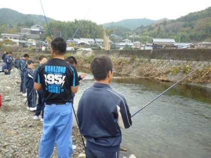 お昼には、みんなで釣ったニジマスを調理して、豚汁とともにお昼ご飯を頂きました。寒くなったこの季節の豚汁はとても暖かく、自分たちで釣ったニジマスは、普段食べている魚よりも格別においしく感じられました。