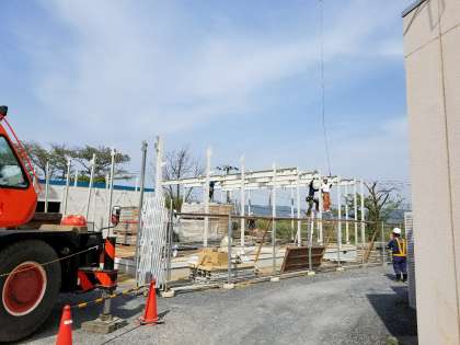 このあとは、壁や天井が取り付けられます。休み明けには内装に取りかかれるのではないでしょうか。
