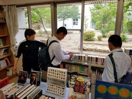 図書館開館日。今日は三年生を対象に昼休みに開放しました。