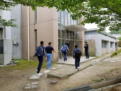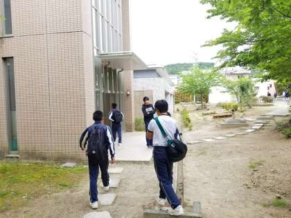 寮単位で登校する生徒。「おはようございます」気持ち良い挨拶が交わされます。