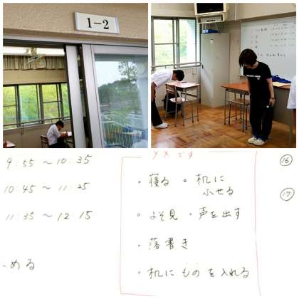 ホワイトボードには受験の際の注意が書かれてあります。昨日からその注意を受けていたはずですが、監督の先生から繰り返し注意を受ける始末。