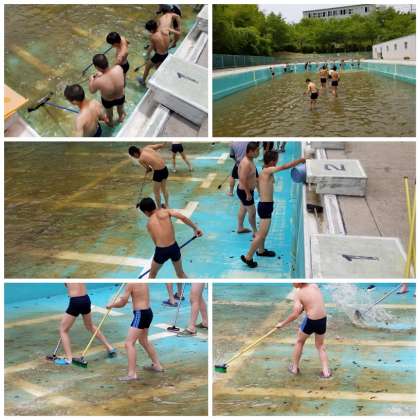 いよいよプール授業が始まります。分校では、各学年体育授業の中でプール清掃を行いました。