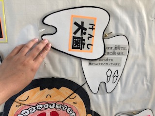歯の掲示物を横にスライドさせると