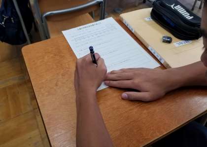 週末金曜日は振り返りシートを書いて下校します。