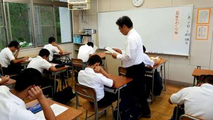 先生の範読でその世界に生徒の身を重ねていきます。そして、主人公の心の変化に生徒は何に気づき、感動するのか。