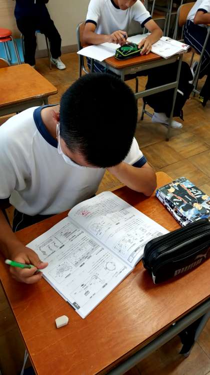 開始時間に合わせ、自主学習が始まりました。シーンと静まりかえった教室では、字を書く鉛筆やぺージをめくる音だけが聞こえていました。
