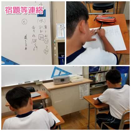 ホワイトボードの連絡事項をそれぞれ連絡帳に写します。日々のルーチンです。