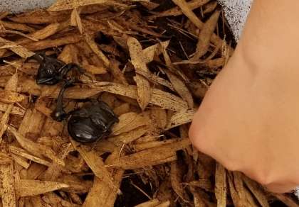 児童に聞くと対決して負けてしまったそうです。カブトムシの勇ましい姿も負けてしまうとこんなことになるのですね。
