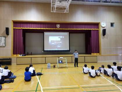 1限目は防災教育として、体育館において、地震の知識と有事の際の具体的な行動について、映像を通じて学習しました。