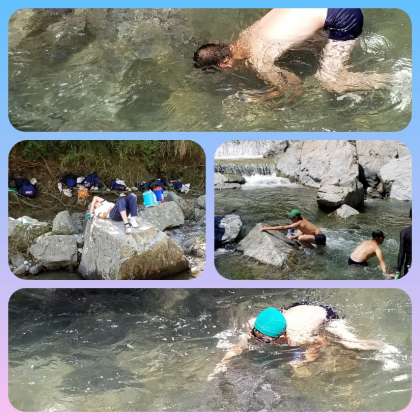 昼食後は、待ちに待った川遊びです。時間の許す限り水と戯れます。先日の大雨の影響もなく、穏やかで透き通った水です。
