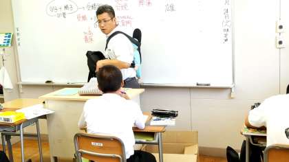 抱っこひもが主流の時代、教科担任はおんぶ紐で赤ちゃん(けいたろうくん)をおぶっています?