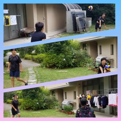 閑散とした学園、寮の庭ではバレーボールを数人の女子たちが楽しんでいました。