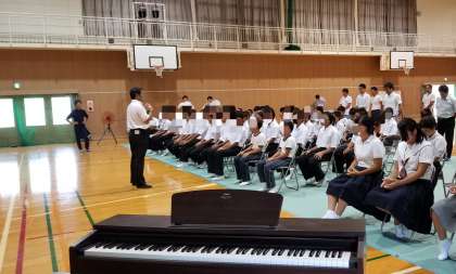 2学期から大型の扇風機が5台程導入され、体育館での暑さは少し軽減されたとは言え、それでも気温が高い中、子どもたちは一生懸命にお話を聞いてくれていました。