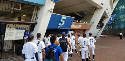 阿武山学園の選手たちも球場に入りました。緊張感が顔に漂っています。