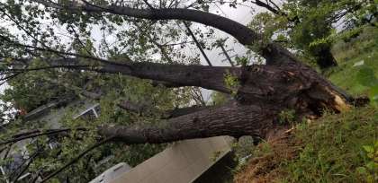 猛烈な風で根元から折れたポプラの木。
