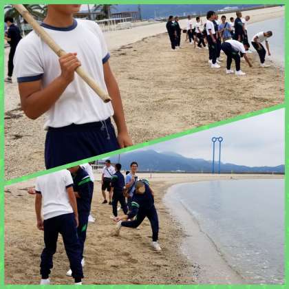 石を投げたり、砂を掘ったりと各々の時間を楽しんでいます。