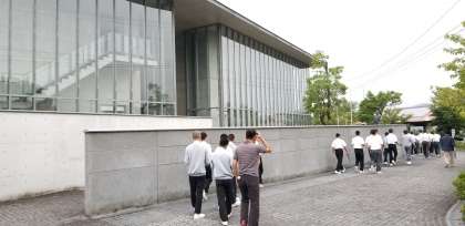 朝の集いは、近くの美術館前広場へ出掛け行いました。