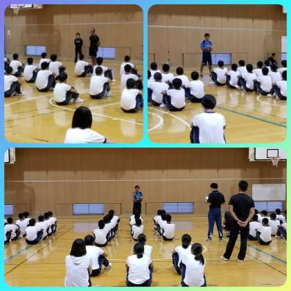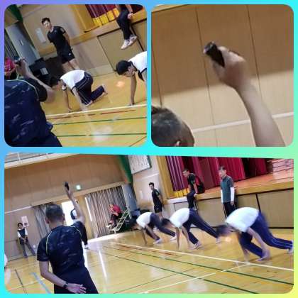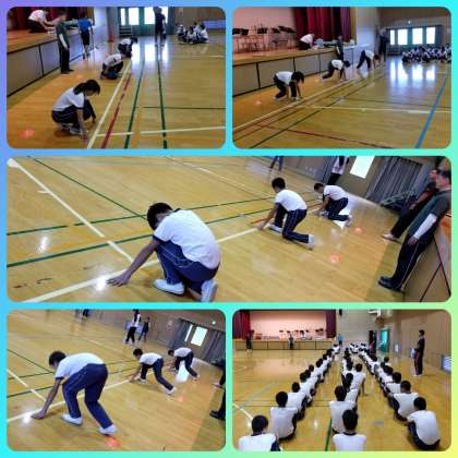 運動場の状態が不良のため、体育館で行いました。