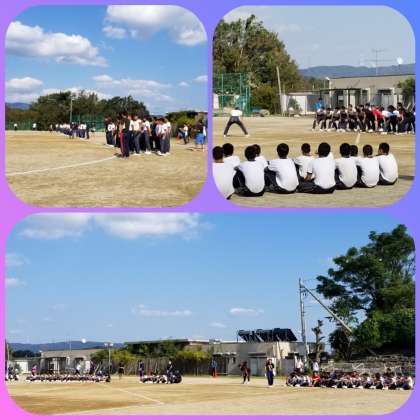 赤・黄・緑の3団が、10分刻みで応援内容、振り付け等の確認とリレーのバトンバスの練習します。