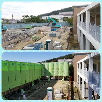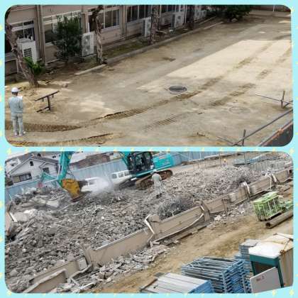 もう、建物の姿は全く無くなっています。コンクリートと鉄筋等が重機によって分別されていました。