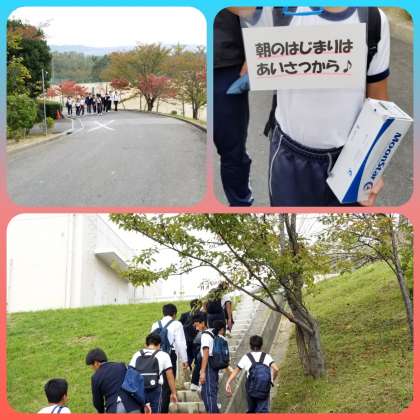 委員会の生徒が挨拶運動を行っています。