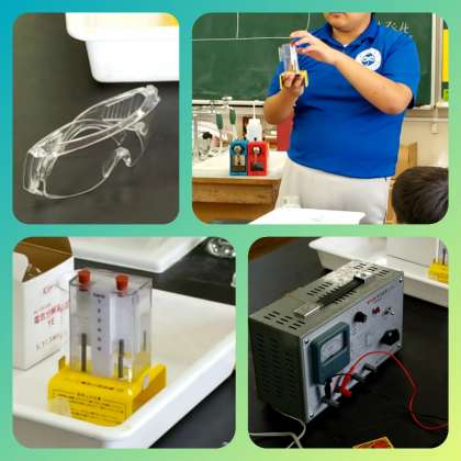 教員からは、実験するにあたって水酸化ナトリウム水溶液の危険性を説明します。