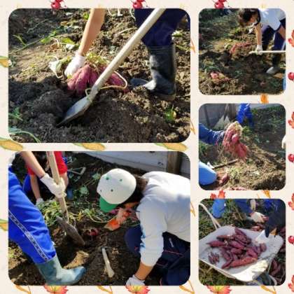 女子の畑では、大量にさつまいもの収穫があり、女子の顔には笑みがこぼれいました。食べている姿を想像しているのでしょうか。