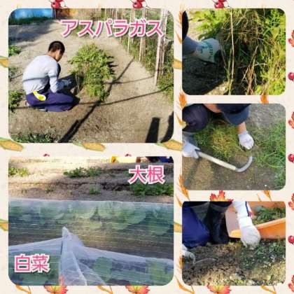 男子の畑では、アスパラガスや白菜、大根の葉が大きく育ち、収穫が待ち遠しいですね。