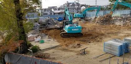 そろそろ更地になるかなと思っていましたが、校舎コンクリートの残骸の分別や地中の基礎工事の掘削に時間がかかっているようですね。
