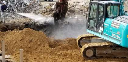 重機が巧みに力強く、コンクリートと鉄筋等を分別していきます。