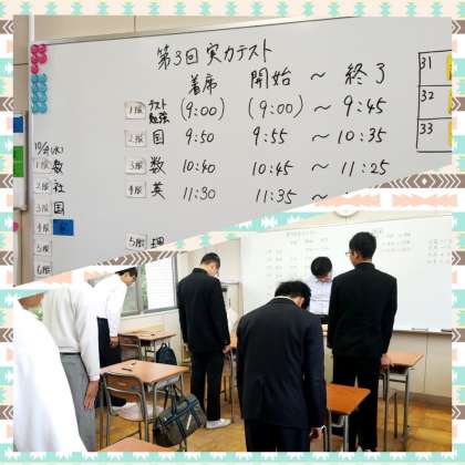 三年生のみなさん、これからの高等学校を始め、就職など様々なところでテスト等は避けれません。今が義務教育における最後の鍛練の場だと認識し、頑張ってください。
