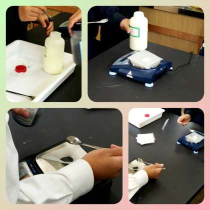 2…混合物を試験管に入れるために、薬包紙載せ量ります。