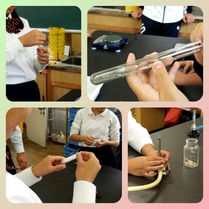 今日の実験のねらいは、鉄と硫黄を混合し、熱を加えるとどうなるか?