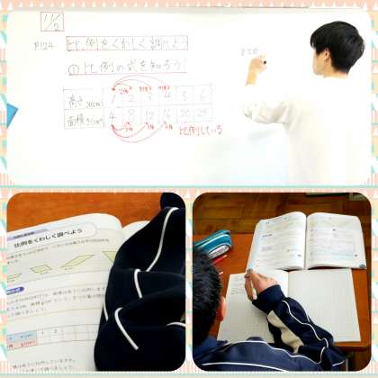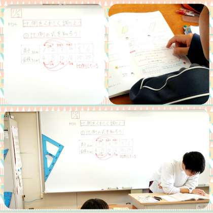 6年生の隣の教室では、中学1年生が数学授業中でした。そこの教室でも比例について学習していました。