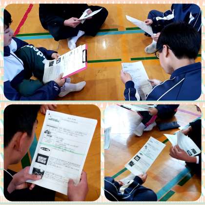 フロアーでは男子委員会が前期委員会の取組みについて、打ち合わせです。自分のセリフにマーカーを入れ、大きな声で丁寧に読みます。本番では緊張が伴いますので、セリフが早くなる可能性があります。ゆっくり読むよう心がけてと指導がありました。