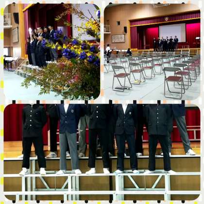 舞台発表のクラスが体育館でリハーサルを行っています。学級での練習の成果がこのリハーサルでも発揮できるか。