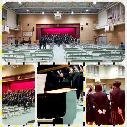 そして、いよいよ舞台に場所を移し合唱・合奏練習に入ります。今日が本番までの最終練習です。音楽科の先生も気持ちが昴まります。歌の楽しさ、合唱のハーモニーの美しさを全身で表現し指導します。