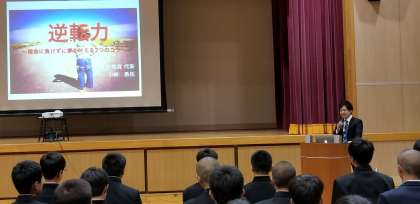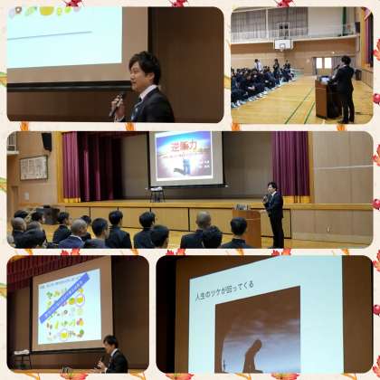 「逆転力」というテーマで小峠先生の境遇や経験などをお聴きしました。映像を交えて進行され、生徒にもとてもわかりやすい内容でした。