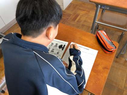 教室に戻ってきて、さっそく感想文に取り掛かっていました。